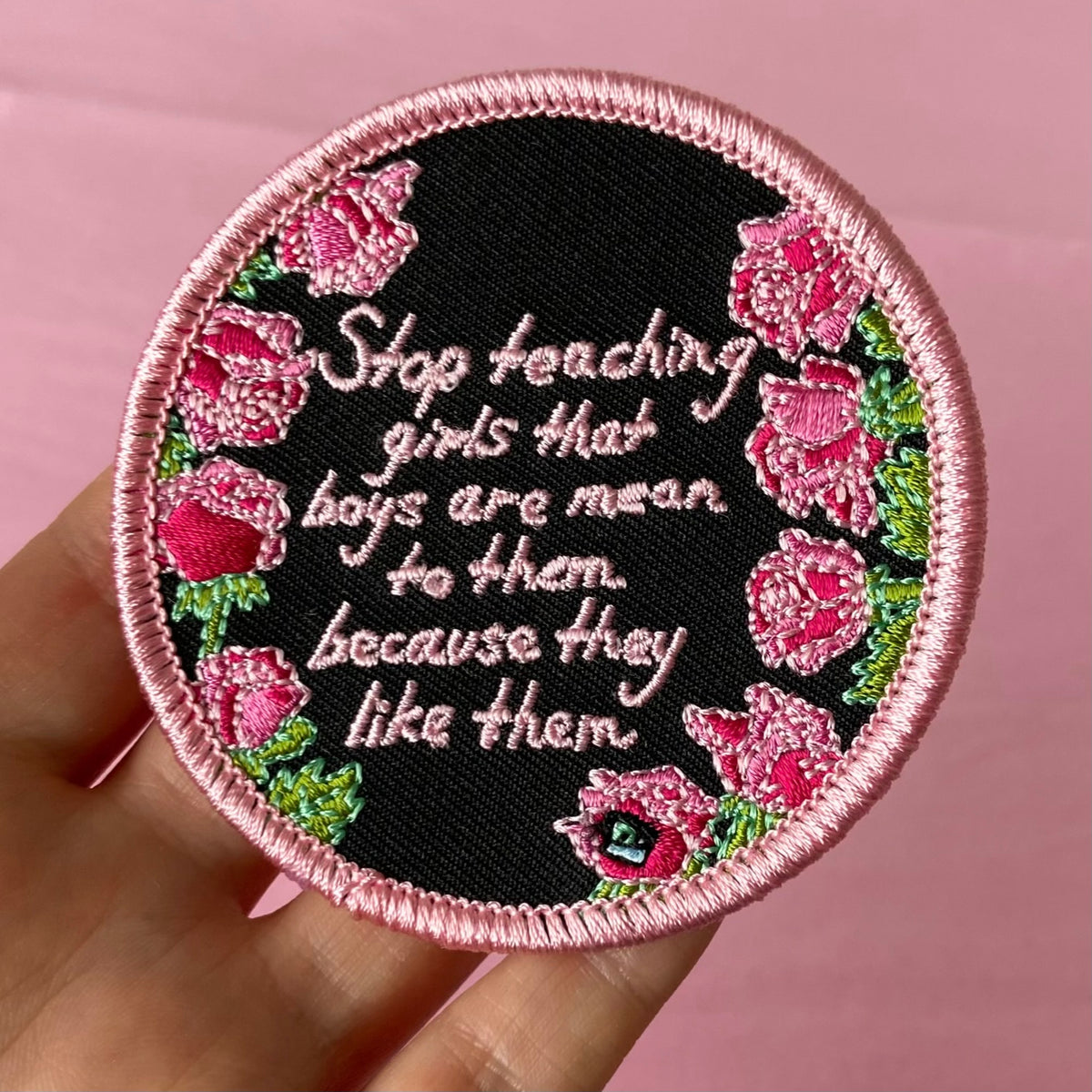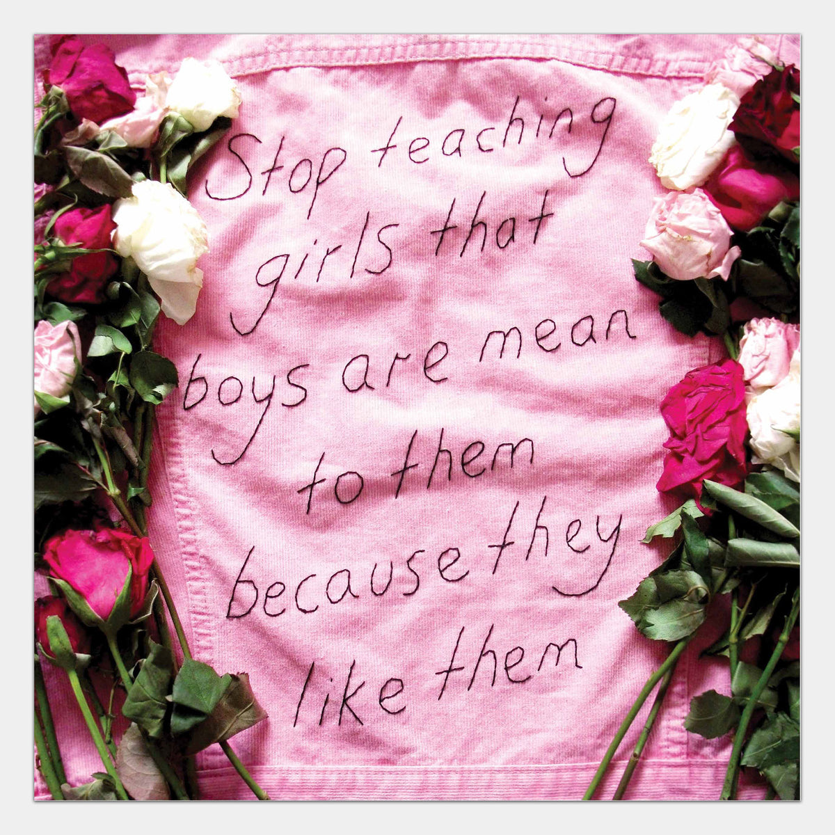 Collection created by Sophie King, inspired by her original artwork "Stop Teaching Girls That Boys Are Mean To Them Because They Like Them", 2016. In which she explores the messages young girls are sent that conditions them to romanticise men's bad behaviours. Which can lead women to mistake abuse for love.